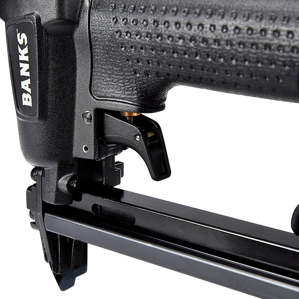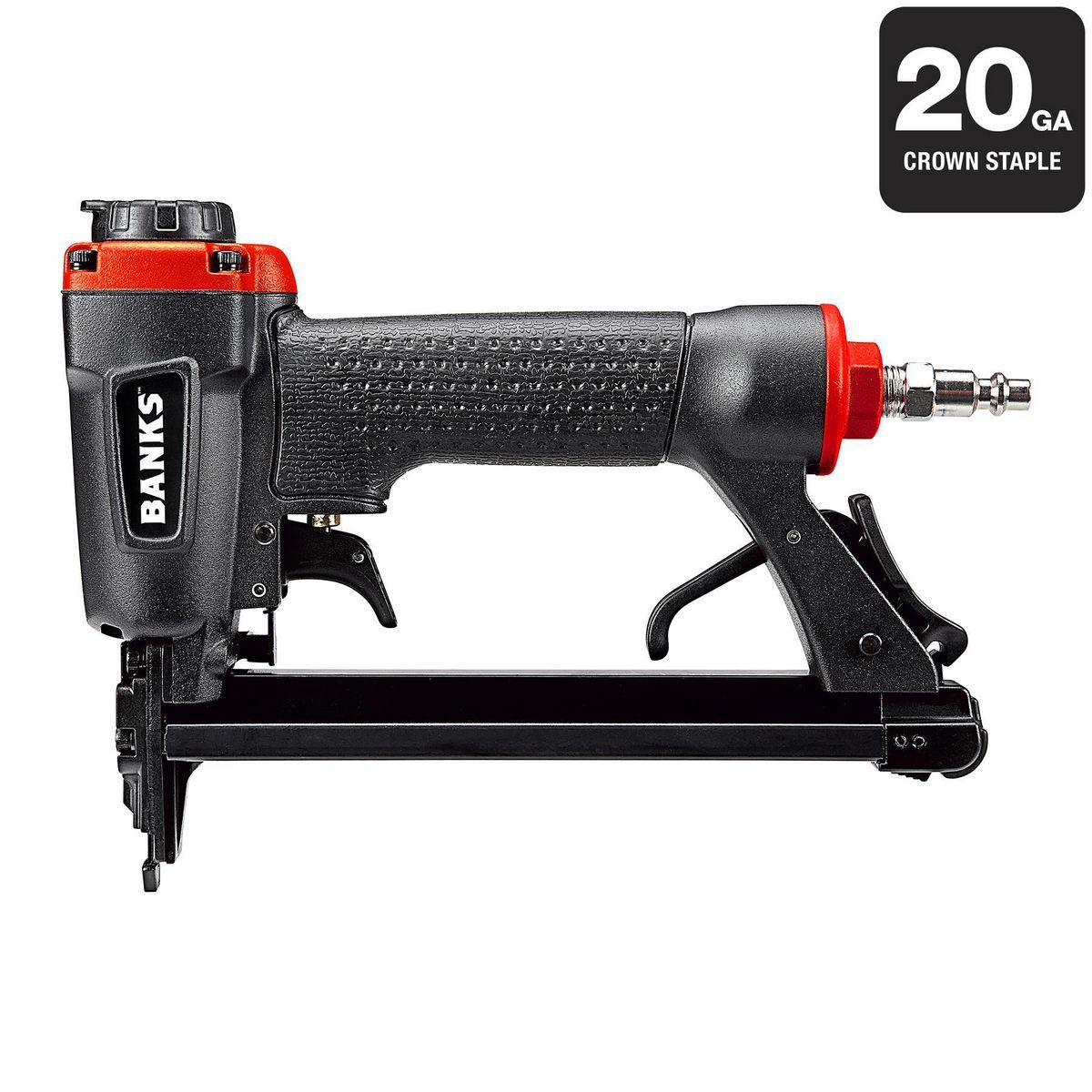 The BANKS® 20-Gauge 7/16-inch Wide Crown Stapler is ideal for all general purpose wood fastenings. The lightweight, narrow-bodied tool is easy to handle, making it ideal for installing trim in tight spaces. The air stapler has a 100 staple magazine with an easy to clean front hatch. Drives 20 gauge, 7/16" crown staples from 0.250" to 0.625" long.