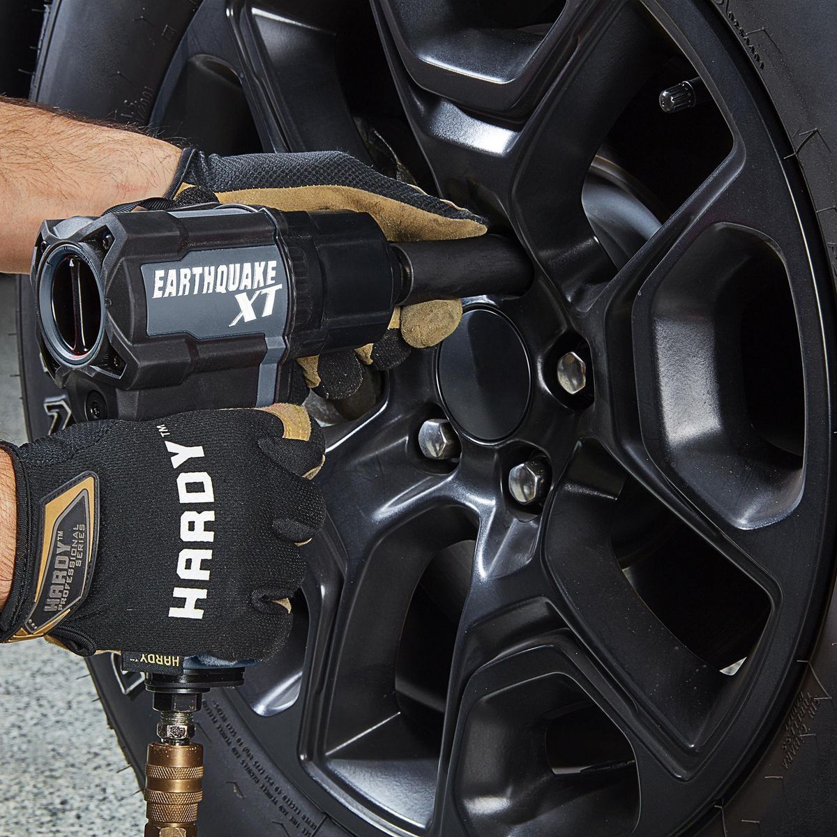 This professional-grade EARTHQUAKE XT® air wrench handles the toughest jobs effortlessly. The composite impact wrench offers a weight of 1200 lb-ft. of the bolt breakaway torque. Lightweight composite handle reduces strain.