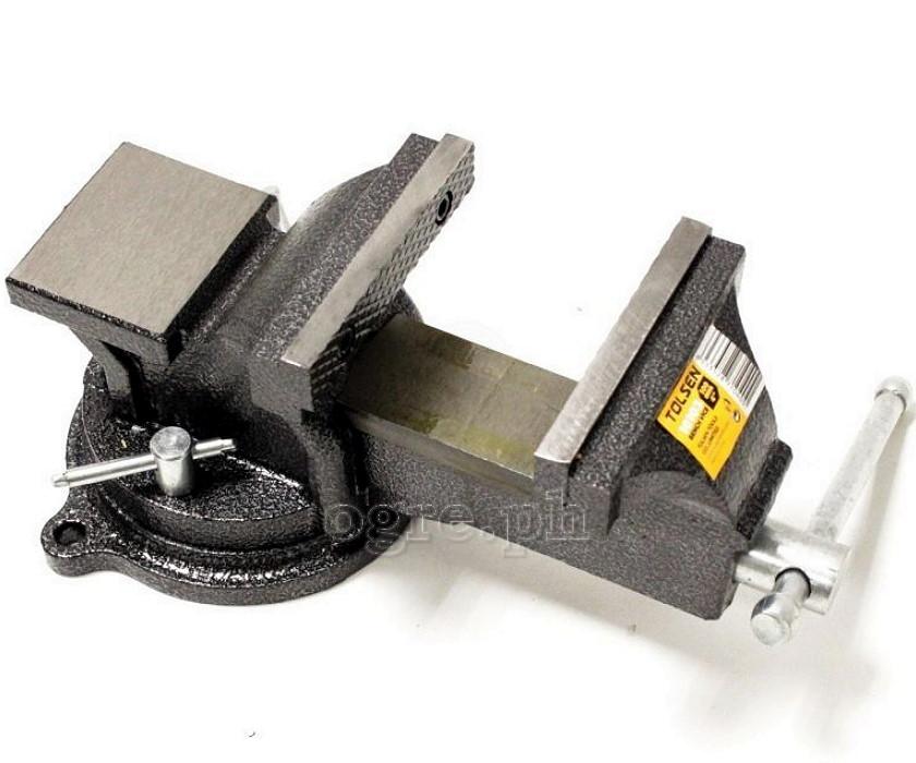 Made of heavy-duty cast iron, this bench vise features replaceable forged steel jaws to grip and hold your workpiece steady. Equipped with a lockable swivel base to help you get the best working angle. The large anvil is perfect for shaping and fabrication work.