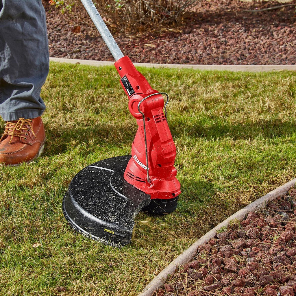The BAUER™ 15 in. String Trimmer features a 5.5 Amp motor that delivers up to 45% more power* to clean up tough grass and weeds. Designed with a flip-up edge guard to protect flowers and plants, an adjustable top handle for precise two-handed use, and an oversized comfort grip with an integrated cord retainer for added convenience.