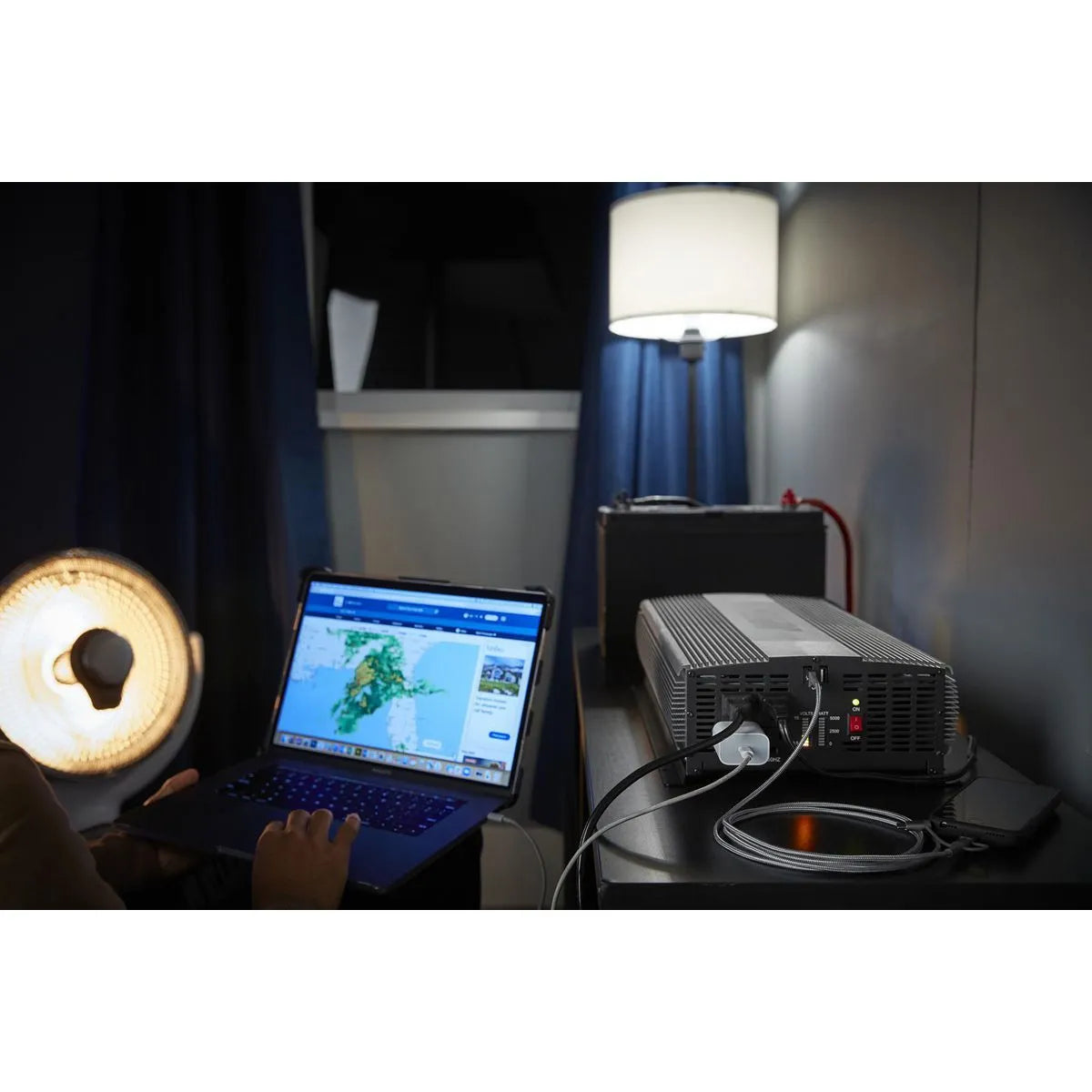 This inverter lets you run power tools, small appliances, and electronics during a camping trip, roadside stop, or power outage using your vehicle's battery. This inverter features high surge capability for products that require power up to 10000 watts to start and LED readout to monitor amps and voltage.