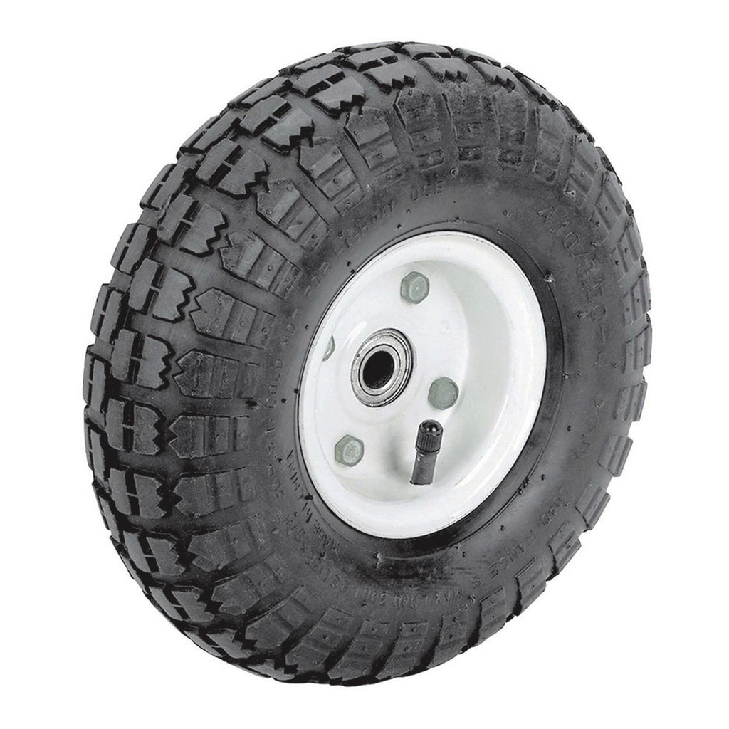 This heavy-duty steel hub pneumatic tire is perfect for rolling carts, carts or carts smoothly. The tire has a high quality rubber casing designed for long life. This ideal replacement pneumatic tire is ideal for carts and other lawn/garden applications.