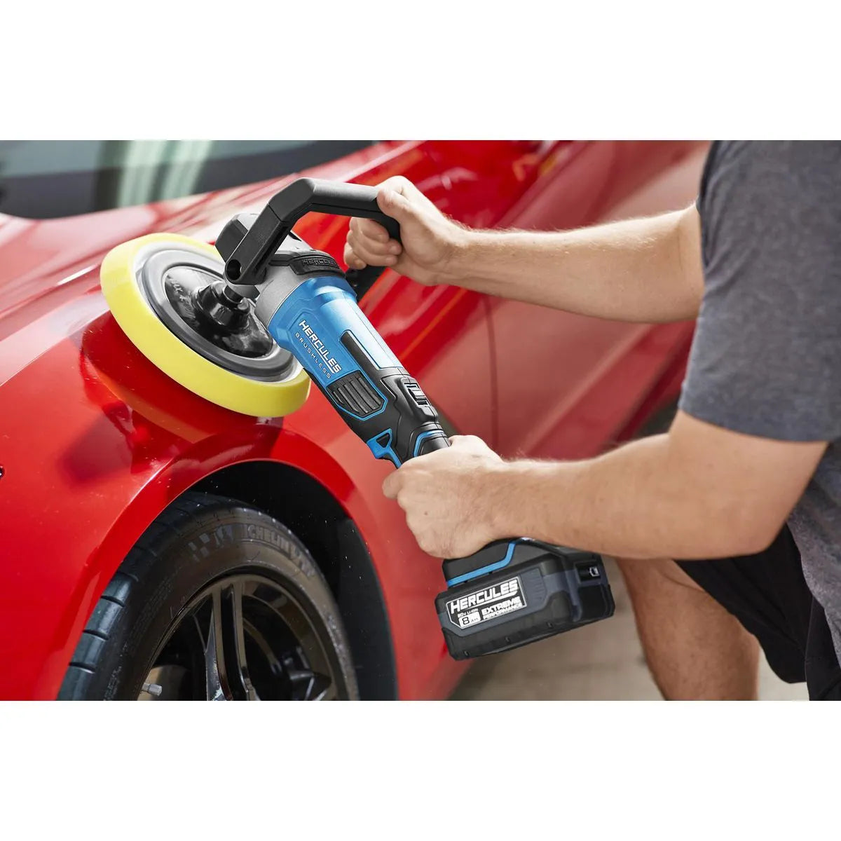 This HERCULES™ 18 cm (7 in) cordless rotary polisher/sander with variable speed features 5 speed settings for optimal performance when sanding, polishing, and finishing. The variable speed trigger provides precise control for flawless results.