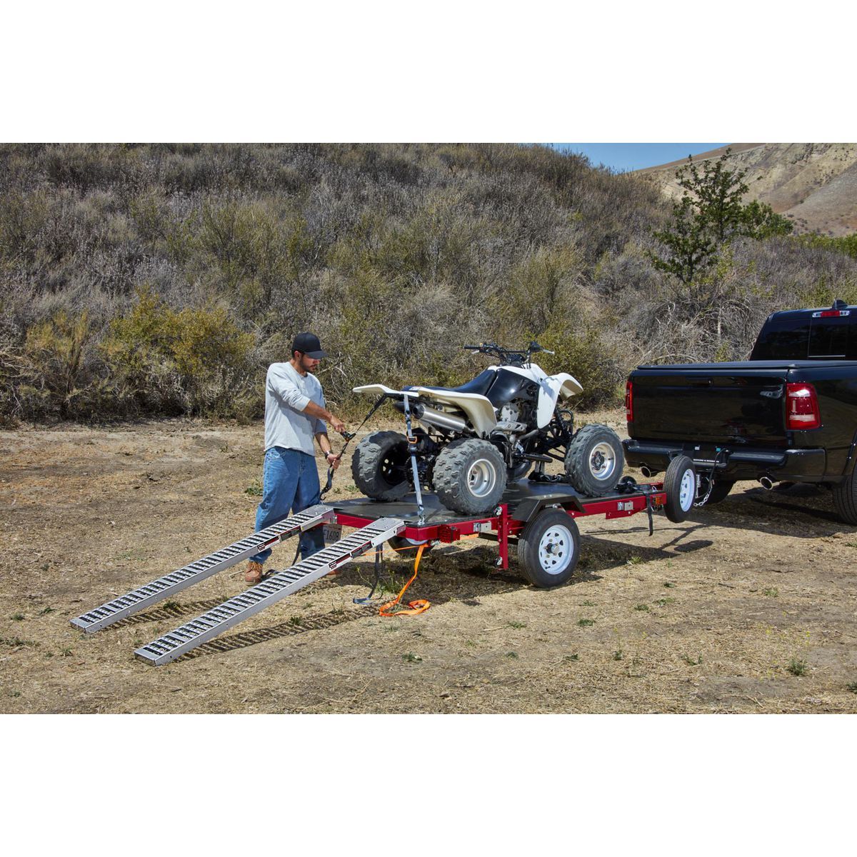 Roll your dirt bikes, ATVs and appliances right into your truck bed with these heavy-duty loading ramps. Perfect for trucks, vans and trailers. These loading ramps eliminate the risk of injury from lifting heavy objects and are much safer than using makeshift plank ramps.