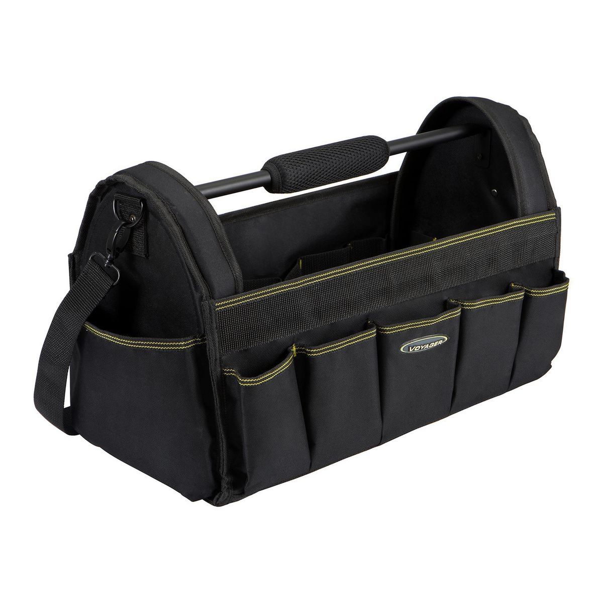 This tool bag can hold your favorite hand tools and power tools. The tool bag has 13 exterior pockets to keep your tools organized. The sturdy and durable fabric allows you to fill it without ripping or tearing it. This handy tool bag is ideal for transporting your tools from your workshop to the jobsite and back.
