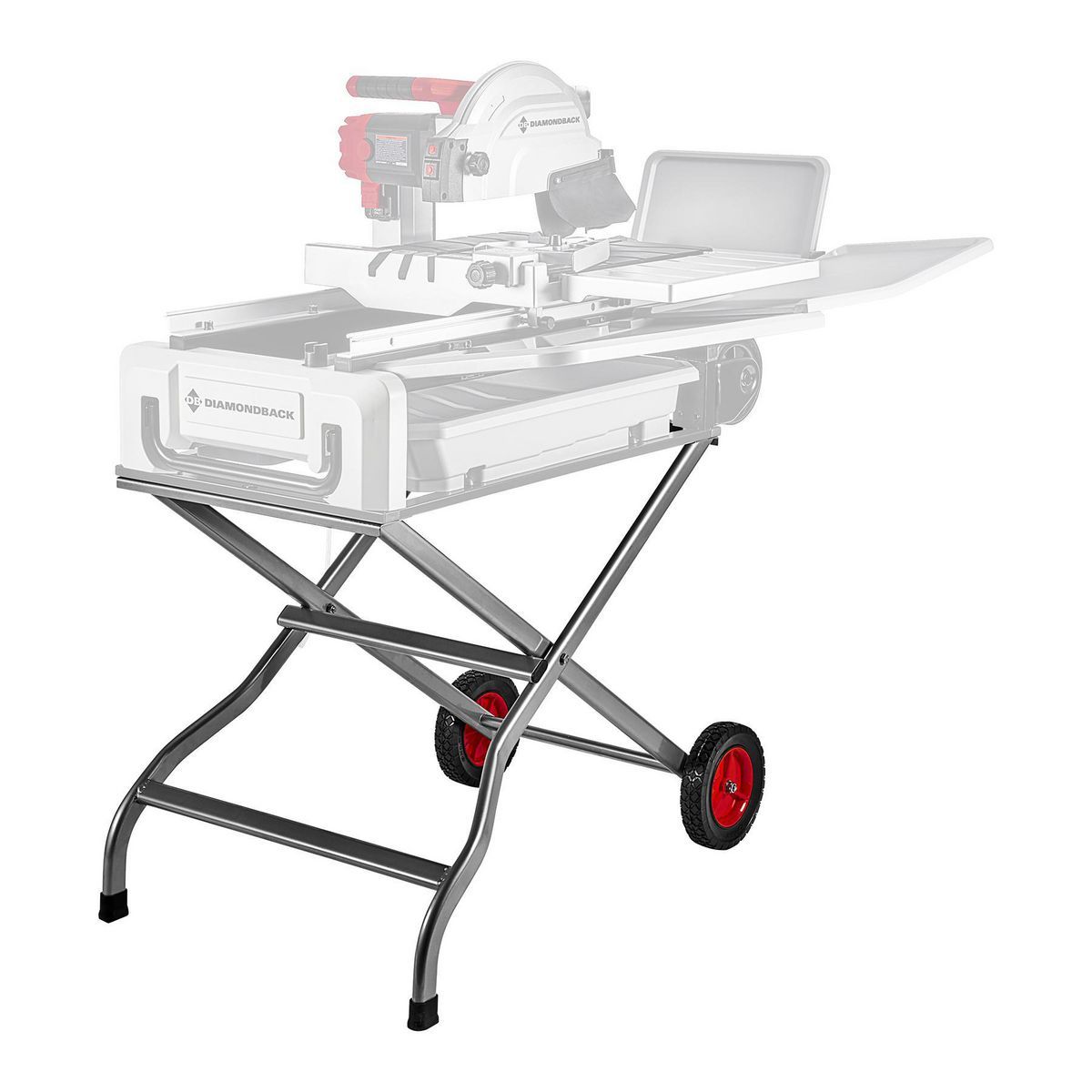 The DIAMONDBACK® tile saw stand folds compactly for easy transport and storage between jobs. Made from robust tubular steel, it is compatible with 18 and 25 cm sliding table tile saws. Its rust- and corrosion-resistant powder-coated finish ensures increased durability.