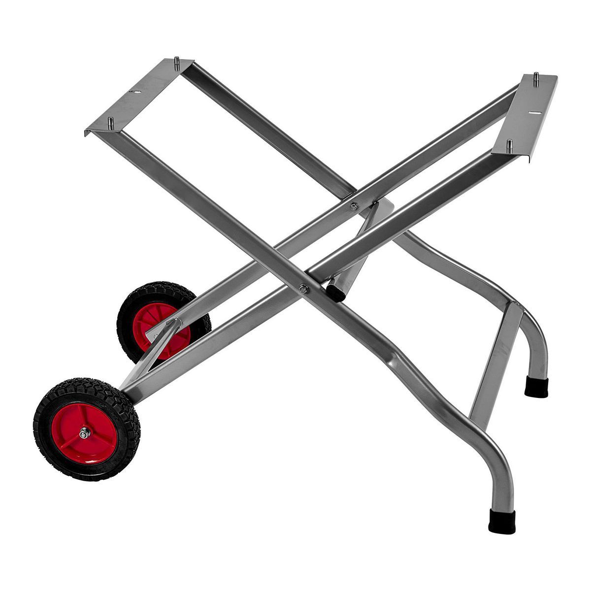 - Four mounting pins secure the saw to the stand