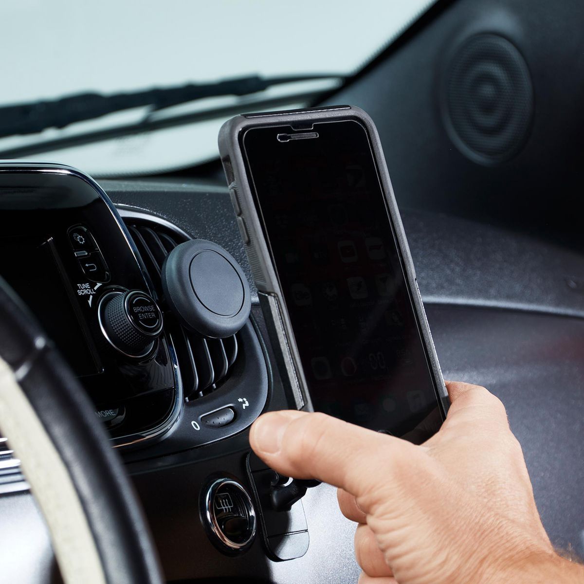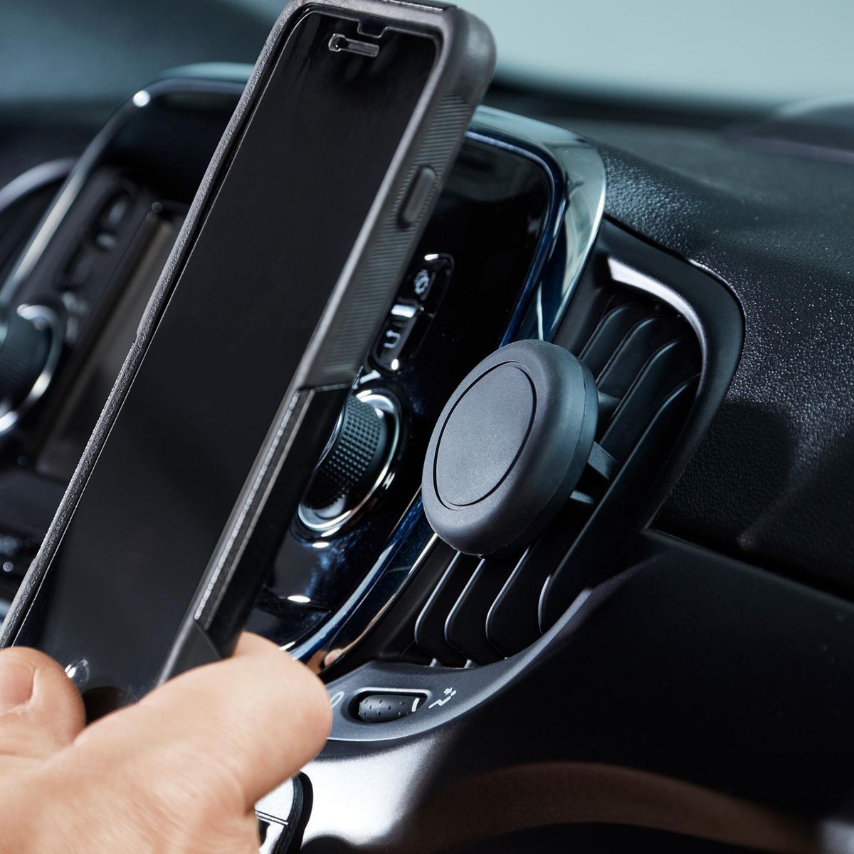 Keep your smartphone visible and secure while you drive. This universal smartphone holder installs quickly in most automobile air vents. The integrated clip is designed to work with horizontal or vertical vents. The powerful magnet resists road vibrations for worry-free use.