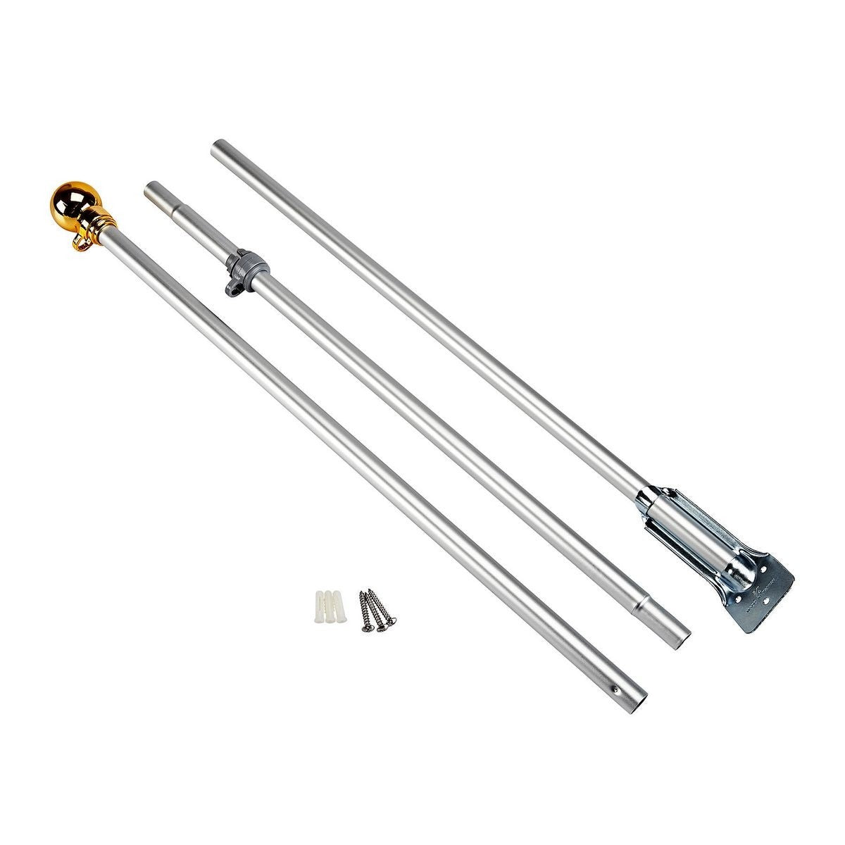 Voici un excellent moyen de montrer vos vraies couleurs. Ce mât de drapeau robuste est livré avec un support et du matériel de montage. Le poteau en aluminium résistant à la corrosion comporte deux points d'ancrage pour fixer les drapeaux dans les coins. Surmonté d'une jolie boule dorée, le poteau mesure un peu moins de 6 pi de long.