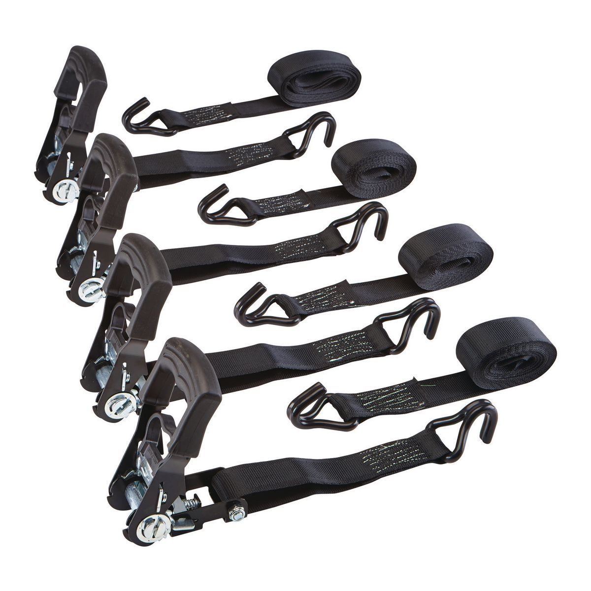 Ces attaches à cliquet sont facilement réglables pour fixer les charges aux plates-formes de camion, aux barres de toit et aux remorques. Les poignées à cliquet facilitent le réglage de la longueur des sangles. Les leviers de poignée vous permettent de serrer les sangles.
