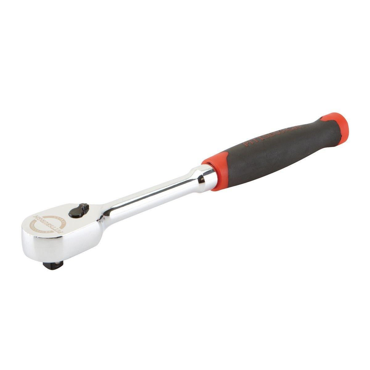 Cette clé à cliquet de qualité supérieure a l'air et se sent bien, résiste à un usage professionnel. Le cliquet à profil bas dispose d'une poignée profilée pour offrir une prise plus confortable tout en travaillant dans des espaces restreints. Ce cliquet offre de meilleures fonctionnalités et performances qu'un cliquet classique.