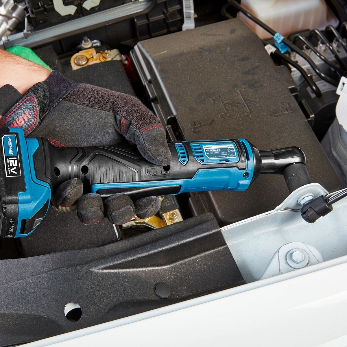 Le cliquet 3/8 po au lithium sans fil HERCULES™ 12v offre la puissance et la vitesse d'un cliquet pneumatique. Le moteur haute puissance fournit 40 pi lb. de couple max à des vitesses de 275 tr/min pour enlever les fixations les plus tenaces. Associez-le à la batterie HERCULES™ de 2,0 ampères-heure pour fournir plus de travail par charge et plus de travail pendant la durée de vie de la batterie.