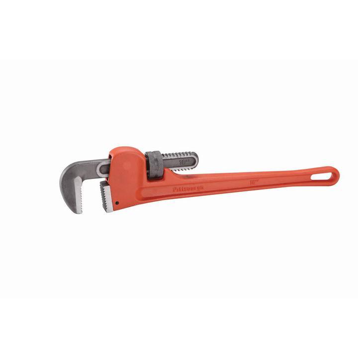 Cette clé à tuyau en acier résiste à une utilisation intensive sur le chantier. Les mâchoires traitées thermiquement adhèrent fermement et résistent à l'usure.