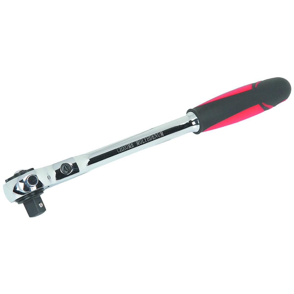 Cette tête pivotante pivote au total à 270 degrés pour permettre un éventail d'angles plus large que les cliquets standard. Cette clé à cliquet à tête pivotante réversible est dotée d'une poignée en caoutchouc coussinée pour un confort et une application de couple plus importants.