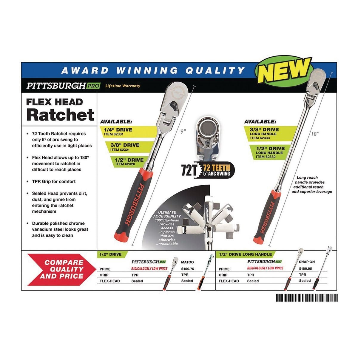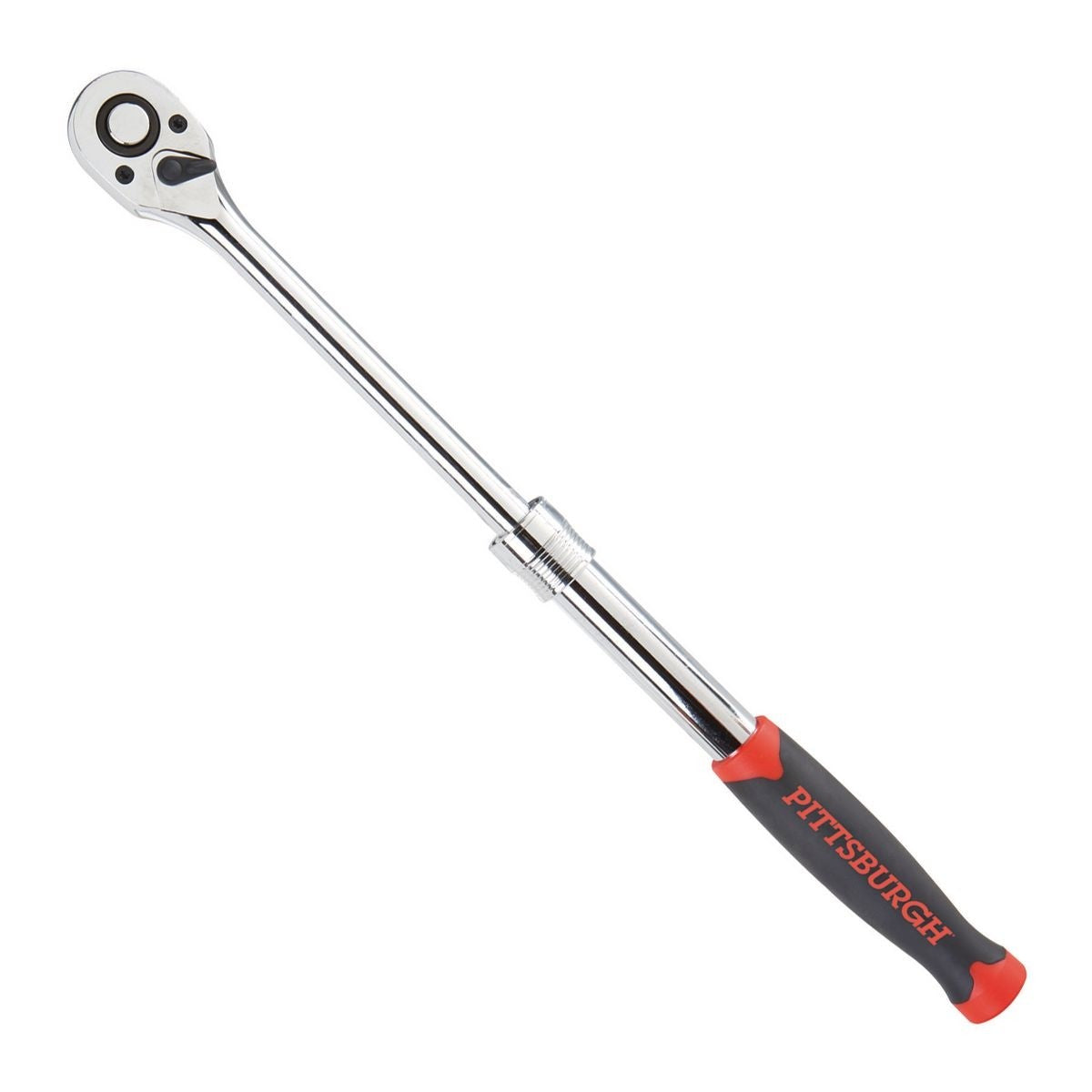 Ce cliquet extensible s'étend jusqu'à un peu plus de 18 pouces de long pour atteindre les zones difficiles d'accès que les cliquets standard ne peuvent pas atteindre. La construction durable en acier au chrome vanadium reste résistante à un couple élevé. Les caractéristiques comprennent une poignée en TPR pour une meilleure prise en main et un meilleur confort pendant que vous travaillez.