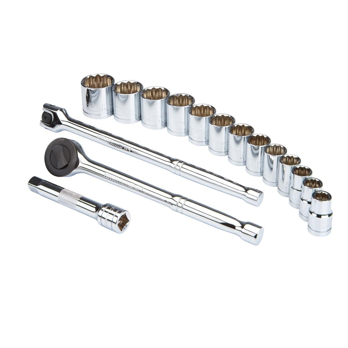 Cet ensemble de douilles est livré avec un cliquet 1/2po, une bras de force et les douilles métriques de taille les plus populaires. Construction en chrome vanadium pour la durabilité et la longévité.