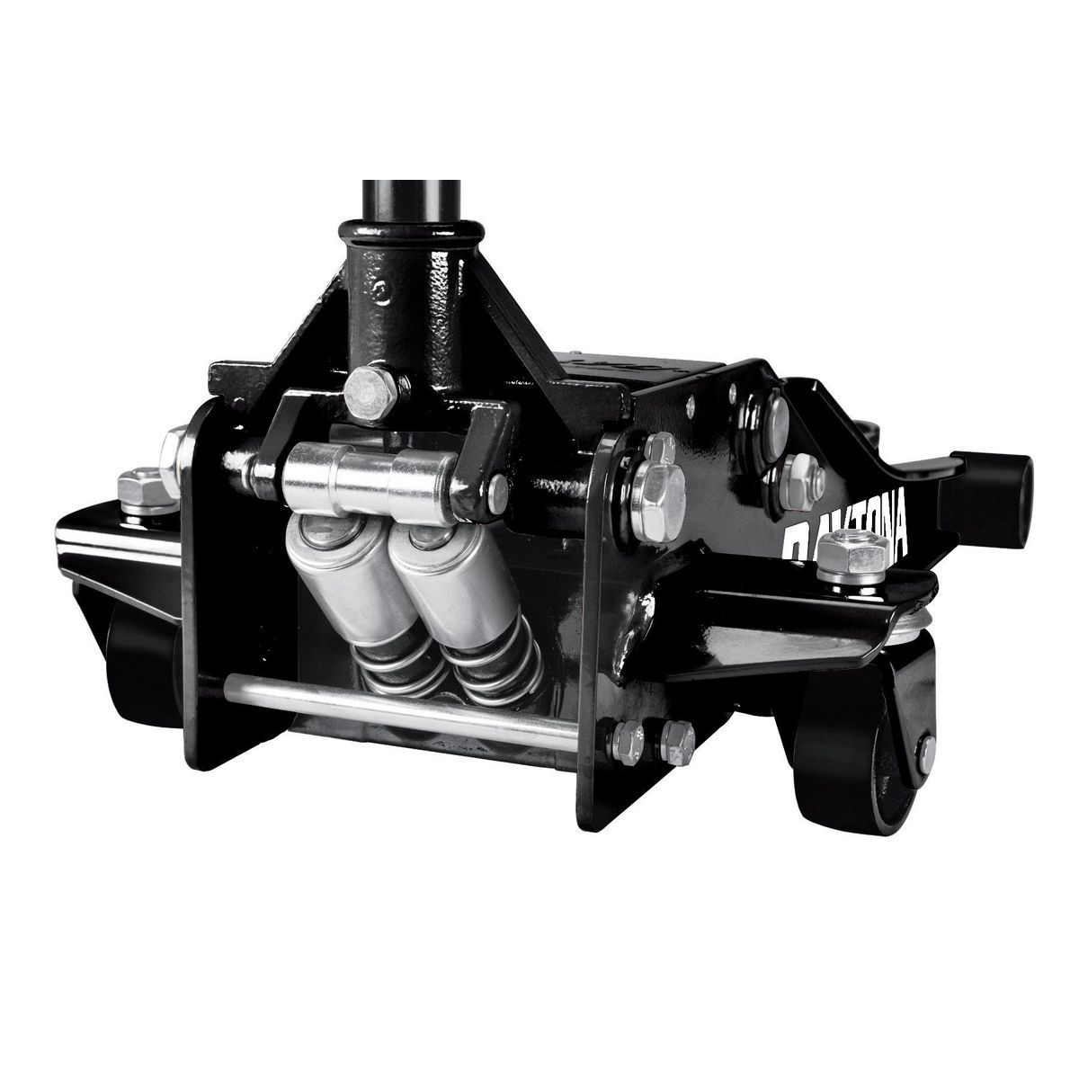 Ce cric de voiture robuste de 3 tonnes éloigne les véhicules de presque deux pieds du sol. Le profil extra-bas atteint sous la plupart des voitures d'exposition. La technologie Rapid Pump® à double piston soulève la plupart des charges de travail en seulement 3-1 / 2 pompes.