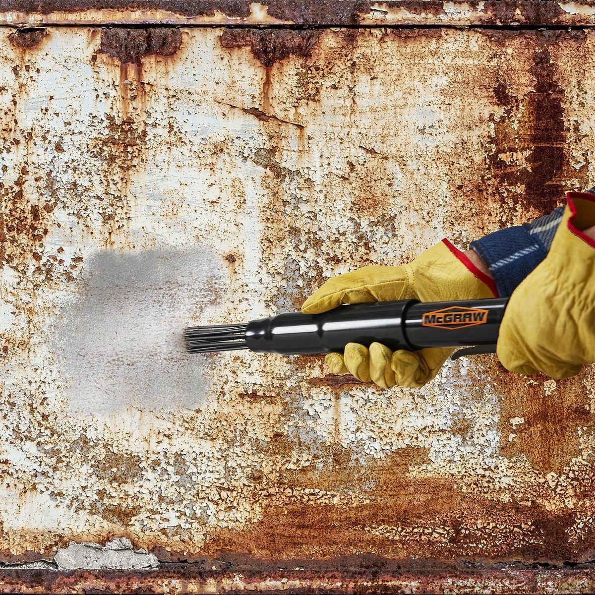 - Les aiguilles en acier trempé et durables éliminent rapidement les scories de soudure, la rouille, la peinture et la saleté