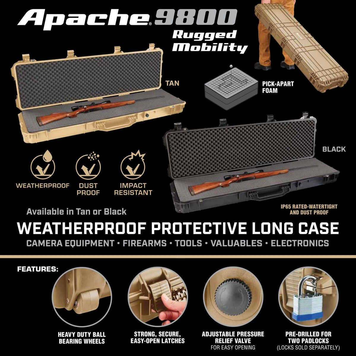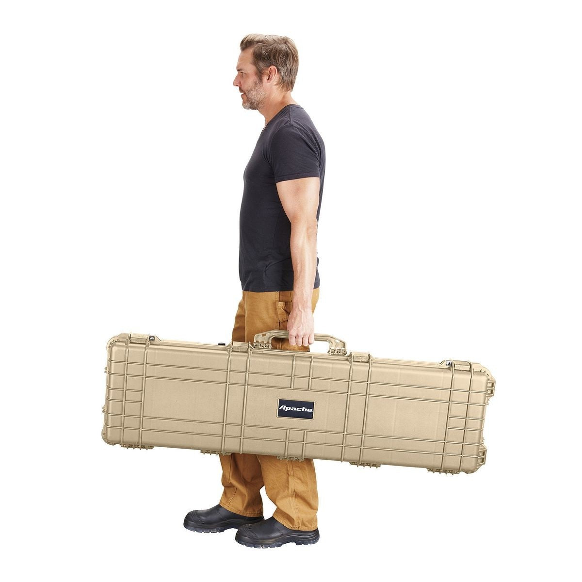 Protégez les carabines, les fusils de chasse, les armes de poing et tout autre équipement spécialisé avec cet étui de rangement Apache® exceptionnellement robuste et résistant aux intempéries. Fabriqué à partir de polypropylène extrêmement durable, cet étui rigide de qualité professionnelle résiste tout en protégeant le contenu des chocs, de l'humidité et de la poussière microscopique. La vanne de purge intégrée égalise la pression afin que vous puissiez ouvrir le boîtier après avoir changé d'élévation.