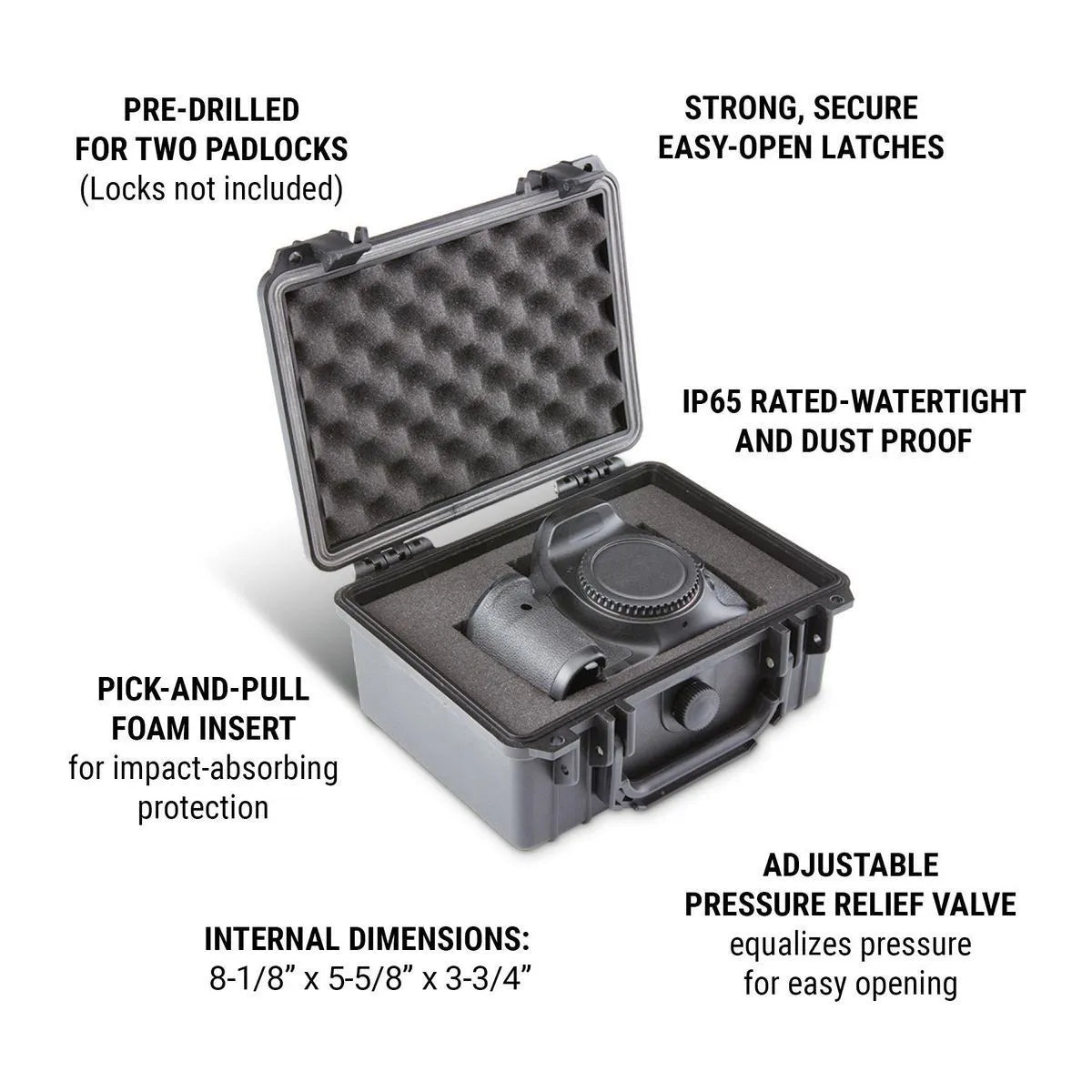 Protégez vos appareils photo, microphones, armes de poing et autres équipements spécialisés grâce à cette mallette de rangement APACHE® exceptionnellement robuste et résistante aux intempéries. Fabriquée en polypropylène extrêmement résistant, cette mallette rigide de qualité professionnelle résiste aux chocs tout en protégeant son contenu des chocs, de l'humidité et des poussières microscopiques. La valve de purge intégrée équilibre la pression pour une ouverture facile après chaque changement d'altitude.