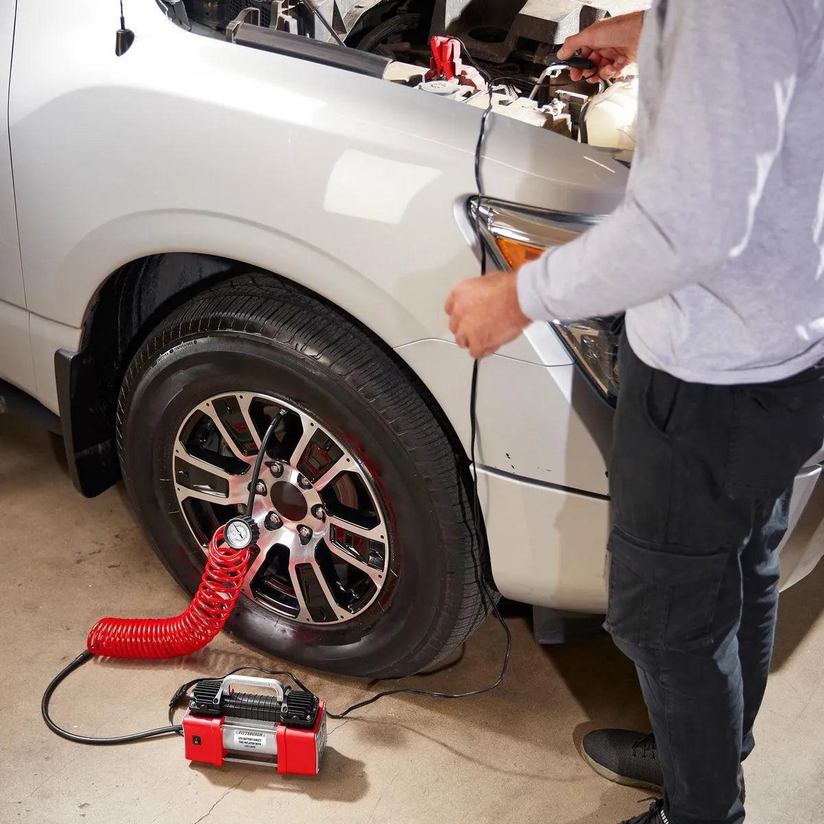 Ce gonfleur de pneus PITTSBURGH™ pratique, alimenté par batterie et doté d'un éclairage LED, gonfle entièrement 4 pneus standard en moins de 10 minutes. Utilisez-le pour gonfler les pneus de votre voiture, camion ou SUV.