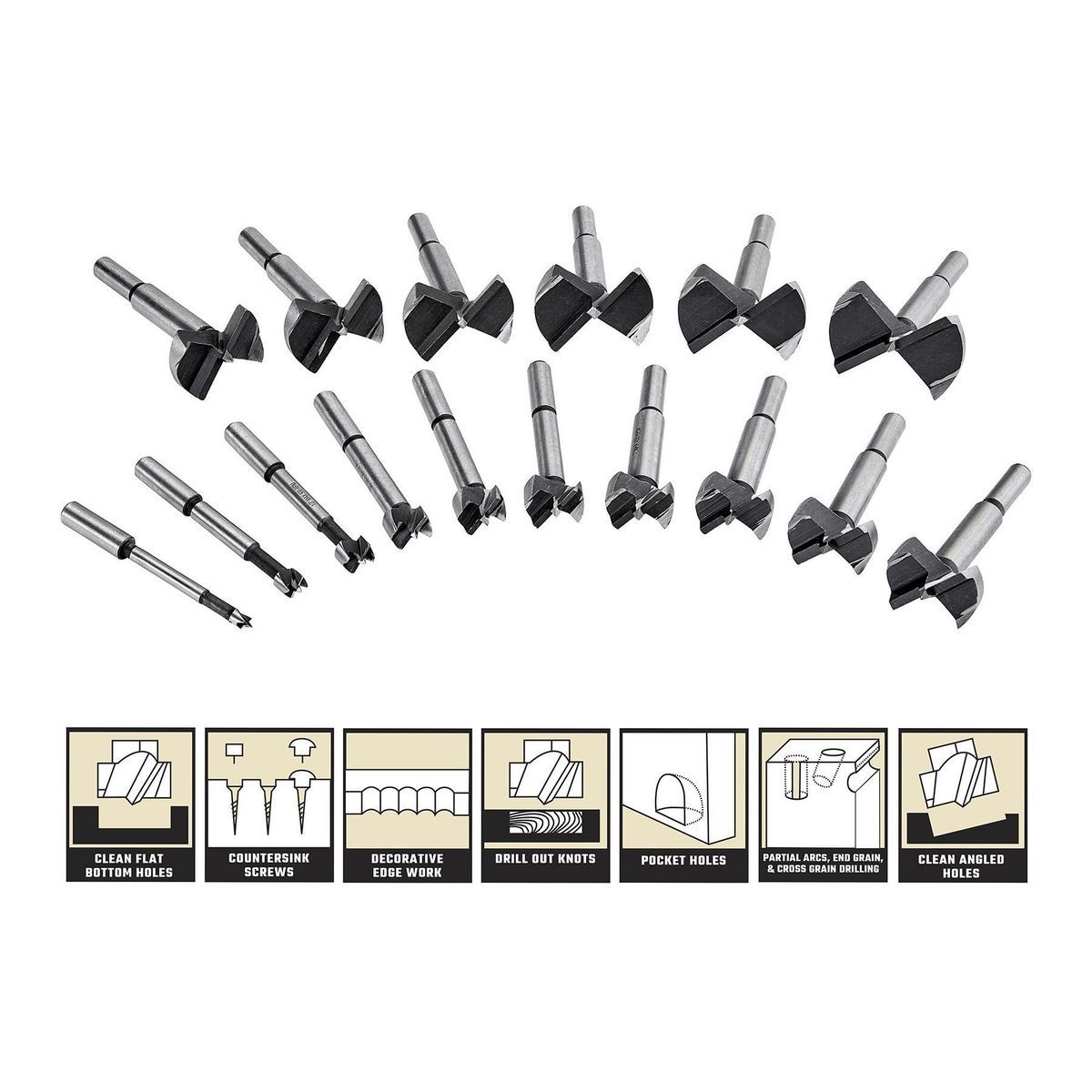 - Les mèches pré-affûtées coupent des trous à fond plat de précision sans déchirure