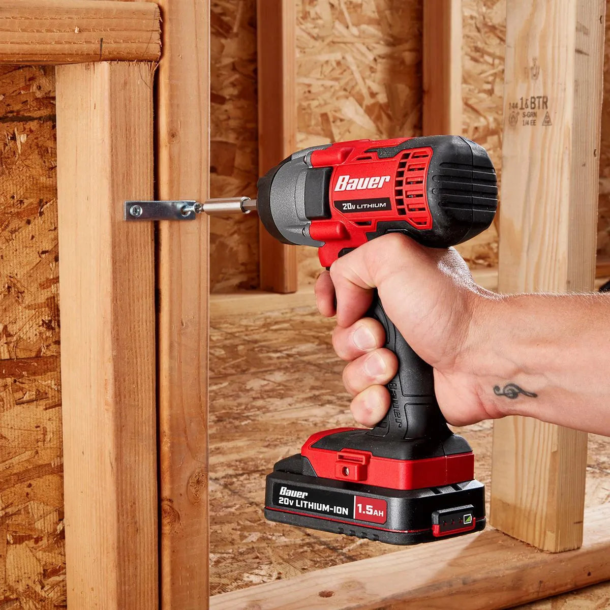L'ensemble perceuse-visseuse à chocs sans fil BAUER™ 20 V comprend une perceuse-visseuse de 1/2 po, une visseuse à chocs de 1/4 po, deux batteries lithium-ion de 1,5 Ah et un chargeur rapide. La perceuse-visseuse délivre un couple allant jusqu'à 450 po-lb, tandis que la visseuse à chocs atteint 1 300 po-lb. Ces deux outils sont équipés de moteurs haute performance, parfaits pour les travaux de fixation exigeants.