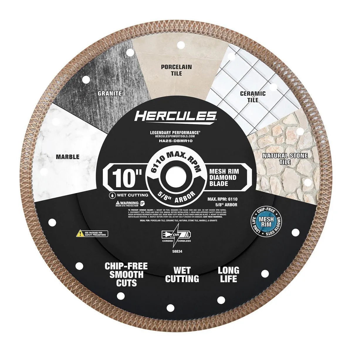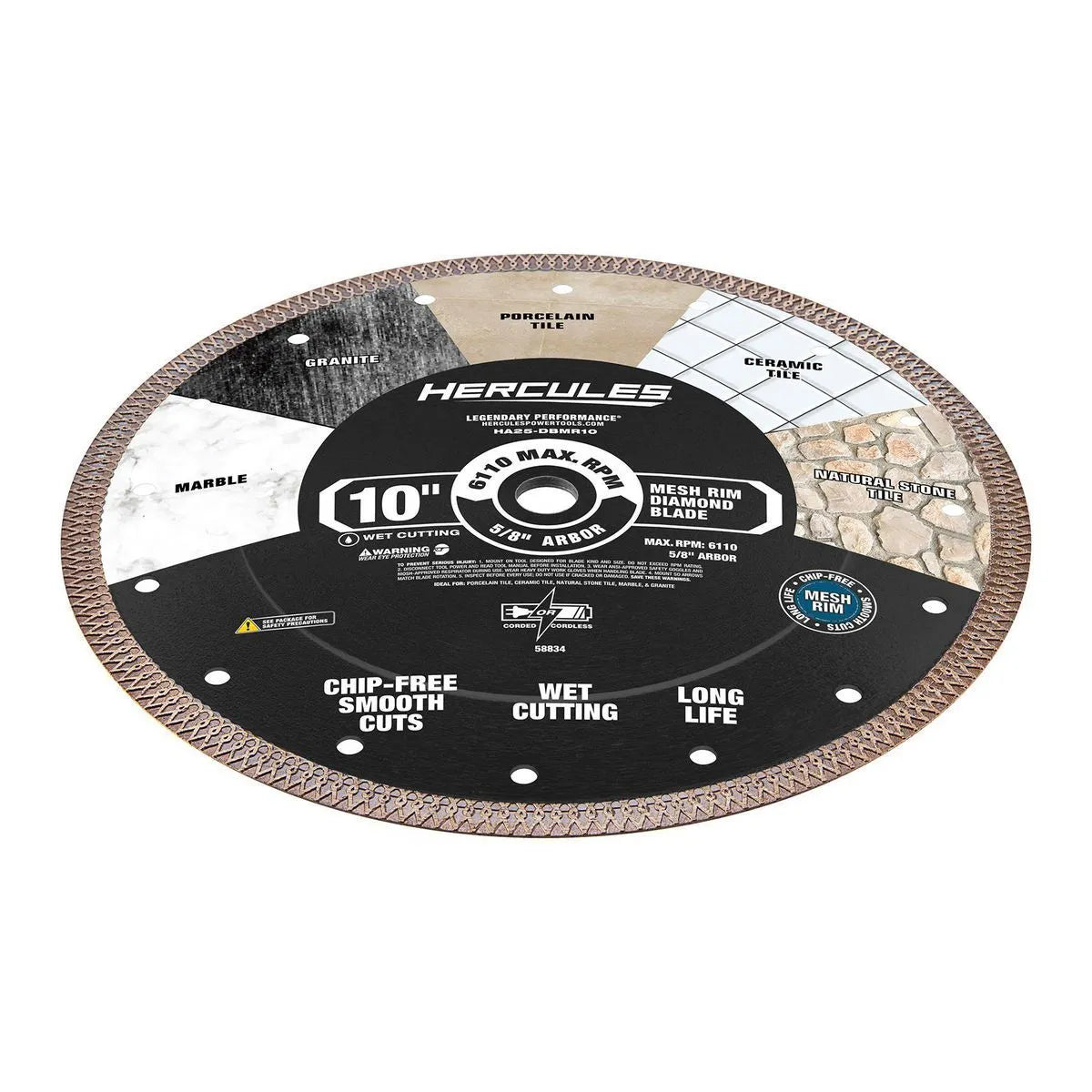 La lame à jante continue professionnelle HERCULES™ de 25,4 cm (10 po) avec jante en maille offre une vitesse, une performance et une durée de vie maximales. Conçue avec des diamants de qualité professionnelle pour des coupes rapides, nettes et sans éclats, et un noyau en acier industriel pour une rigidité et une précision de coupe optimales. La jante en maille turbo réduit la friction et assure une meilleure dissipation de la chaleur, ce qui la rend idéale pour la découpe de la porcelaine, du granit, du marbre, de la pierre naturelle et des carreaux de céramique. À utiliser avec des scies à carrelage.