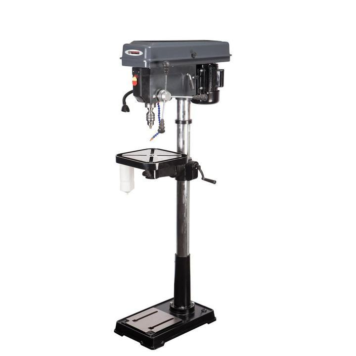 Cette perceuse à colonne polyvalente est équipée d'un moteur à roulement à billes à 16 vitesses pour le perçage d'une grande variété de matériaux. Cette perceuse à colonne est équipée d'une butée de profondeur réglable et d'une jauge, d'un graisseur avec tube flexible et d'une lampe.