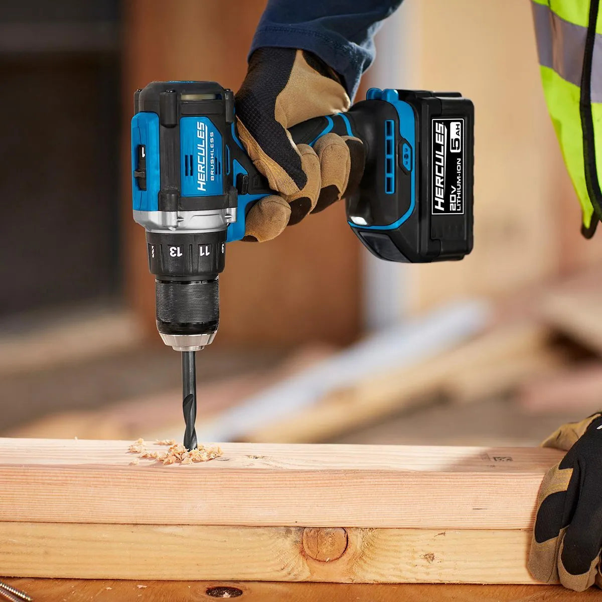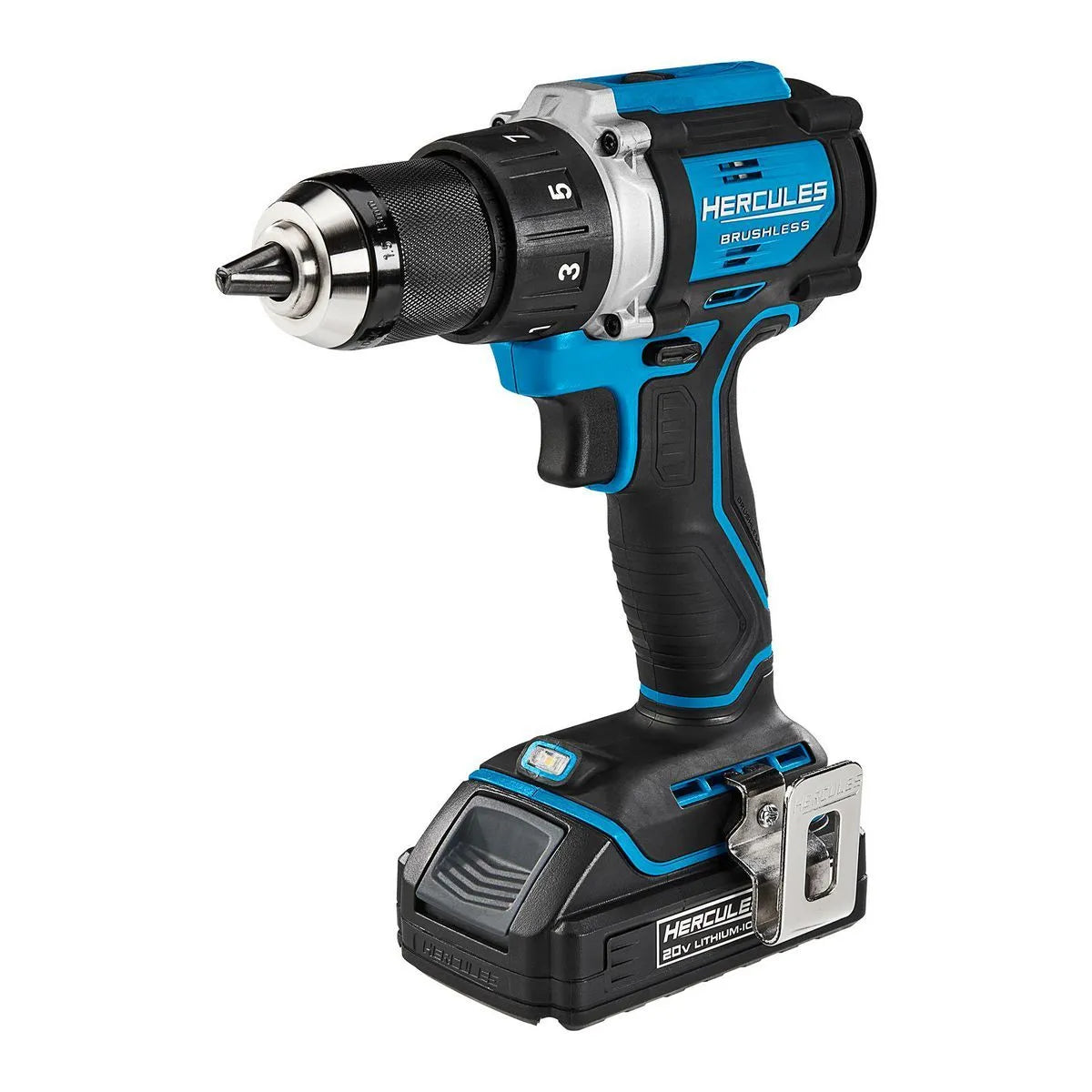 Dotée d'un moteur sans balais haute performance, cette perceuse-visseuse sans fil HERCULES® 20 V à vitesse variable de 1/2 po offre 80 % de puissance supplémentaire* avec un couple maximal de 1 200 po-lb pour percer les travaux exigeants. La transmission à 2 vitesses et les 14 réglages d'embrayage permettent d'adapter la vitesse et la puissance de perçage à l'application, pour une précision optimale. Le mandrin à cliquet JACOBS de 1/2 po, entièrement métallique, assure une prise ferme sur vos forets, vous évitant ainsi de devoir vous arrêter et de régler la vitesse en cours de travail. Grâce à sa construction entièrement métallique, cet outil robuste est prêt à résister aux conditions difficiles du chantier. Ressentez le confort et la réduction de la fatigue de cet outil bien équilibré, doté d'une poignée surmoulée texturée, qui facilite les tâches quotidiennes.