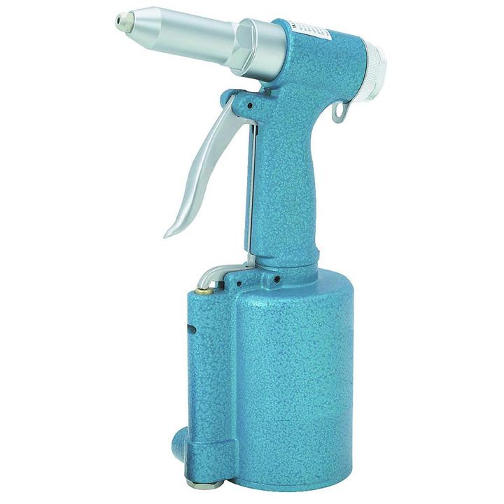Cette puissante riveteuse hydraulique à air est rapide et suffisamment robuste pour le travail de production. Les nez de la riveteuse à air sont construits en acier chromé pour une durabilité maximale. Les caractéristiques comprennent un capuchon de sécurité pour collecter les goupilles de rivet usées et une soupape de surpression pour éviter les surcharges.
