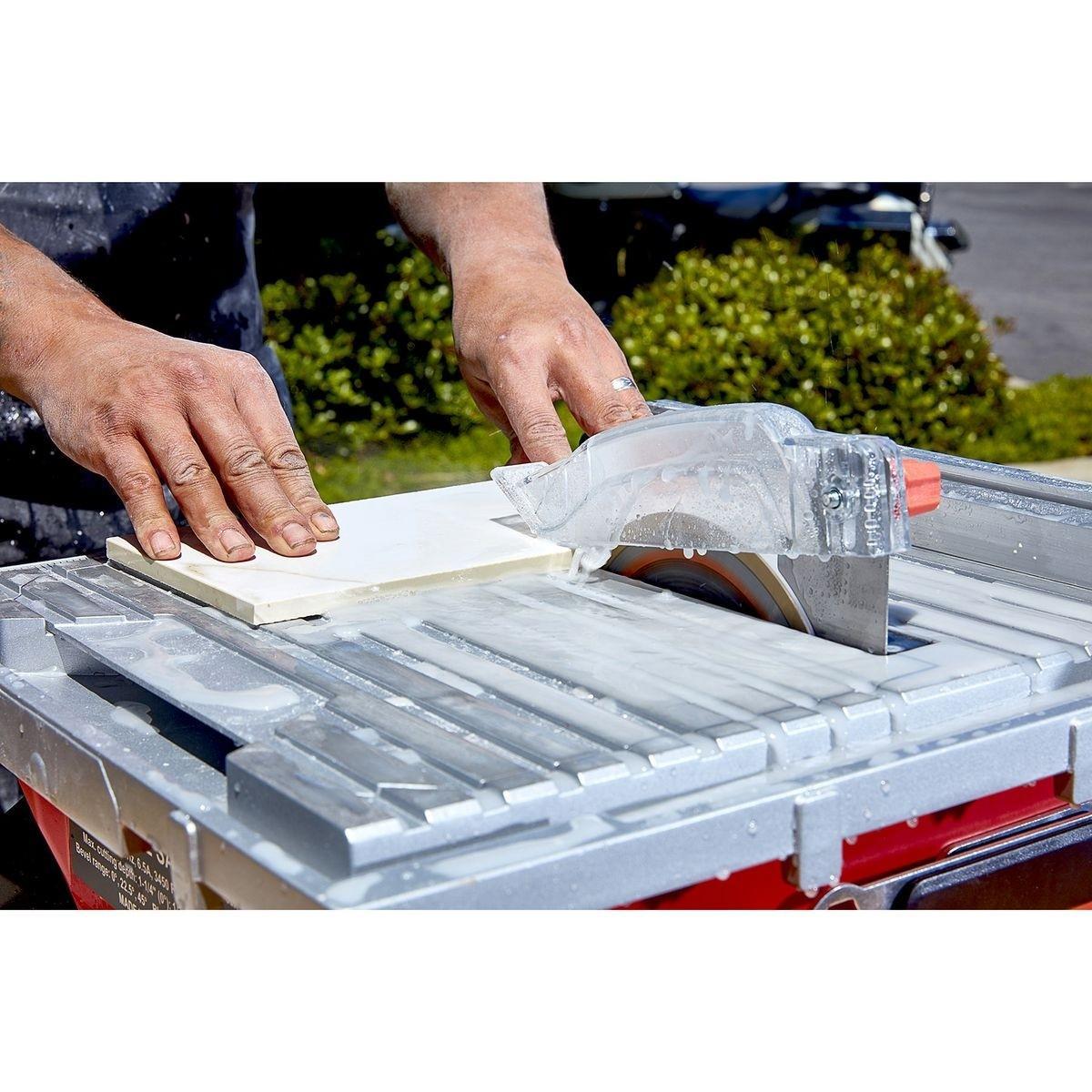 Conçu pour le professionnel, la table Diamondback ™ 7 pouces produit 3500 tr / min, capable de couper la porcelaine, la pierre et la maçonnerie les plus résistantes jusqu'à 1-1/4 po d'épaisseur. La table en aluminium usiné avec précision prend en charge une capacité de refente de 18 po et une capacité diagonale de 12 po. Un guide de refente en aluminium robuste se verrouille solidement sur la table pour assurer des coupes droites et précises à chaque fois. Le bac à eau de grande capacité et le capot anti-éclaboussures intégré gardent la lame humide, gardent vos coupes propres et le reste de la pièce sèche. Les pieds en caoutchouc protègent la surface de travail et les poignées de transport intégrées facilitent le transport de la scie.