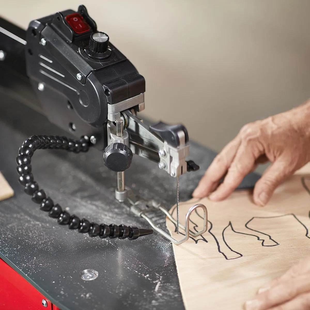 - Souffleur de poussière réglable dégageant les débris de la ligne de coupe