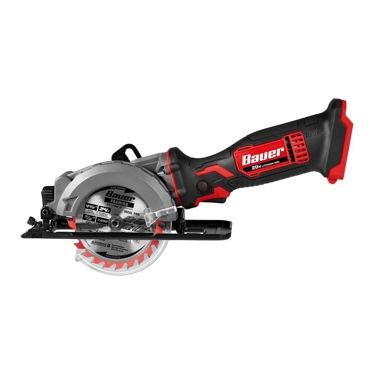 La scie circulaire sans fil BAUER™ 20 V de 4-1/2 po est 15 % plus légère* et permet jusqu'à 375 coupes sur une seule charge.** Le moteur haute puissance de 5 000 tr/min coupe sans effort du bois jusqu'à 1-9/16 po d'épaisseur pour une variété de travaux de charpente.
