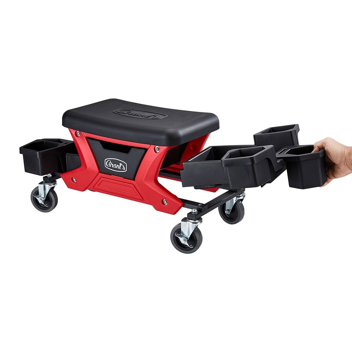 - Les plateaux latéraux, les porte-bouteilles, le porte-outils, le tiroir et le coussin de siège sont tous amovibles pour une configuration personnalisée et un nettoyage facile