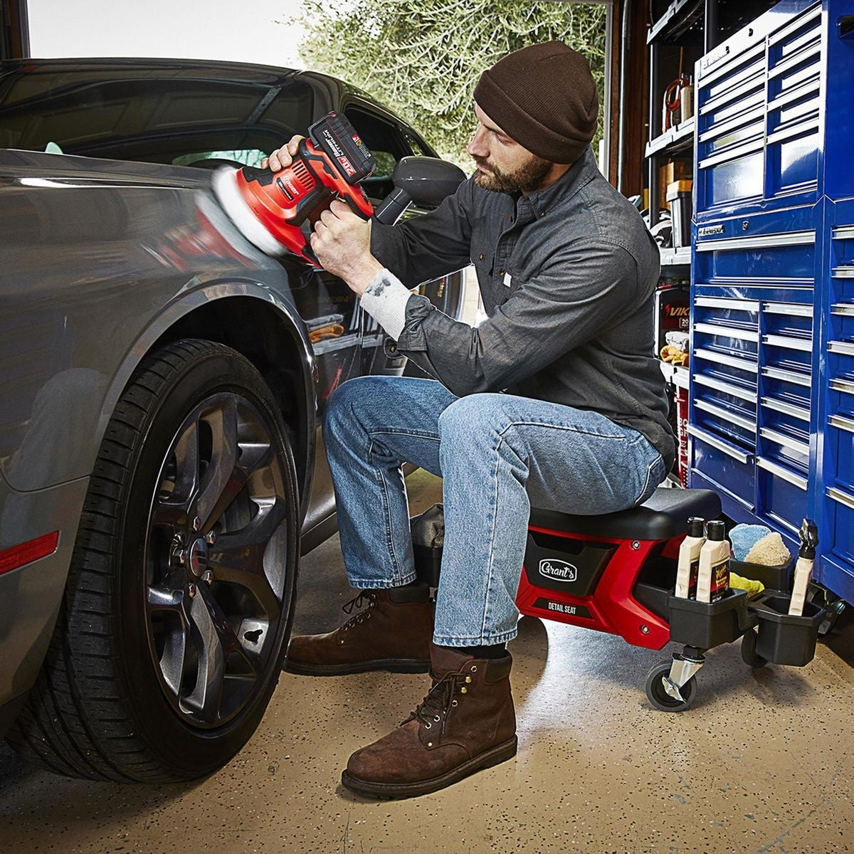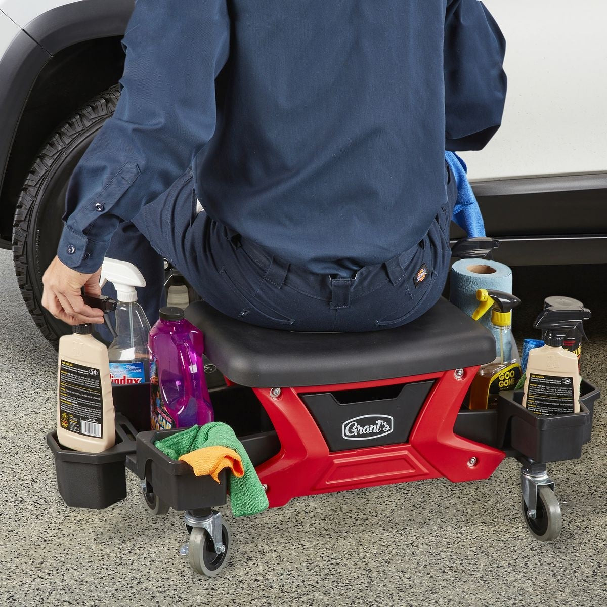Ce siège d'esthétique auto compact est idéal pour changer les roues, entretenir les freins, nettoyer les phares et les détails automobiles généraux. Conçu avec une capacité de poids de 300 lb, un cadre en acier robuste et un coussin de siège ergonomique confortable.