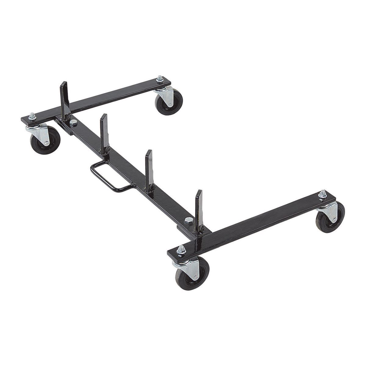 Rangez et soutenez jusqu'à quatre chariots à roues hydrauliques avec ce support robuste DAYTONA™. Ce support est doté d'une poignée pratique et de quatre roulettes pivotantes de 7,6 cm (3 po) à roulement fluide pour une maniabilité optimale. Quatre chevilles en acier soudées de conception universelle supportent les chariots à roues hydrauliques Pittsburgh® Automotive et la plupart des autres marques à cadre tubulaire en acier.
