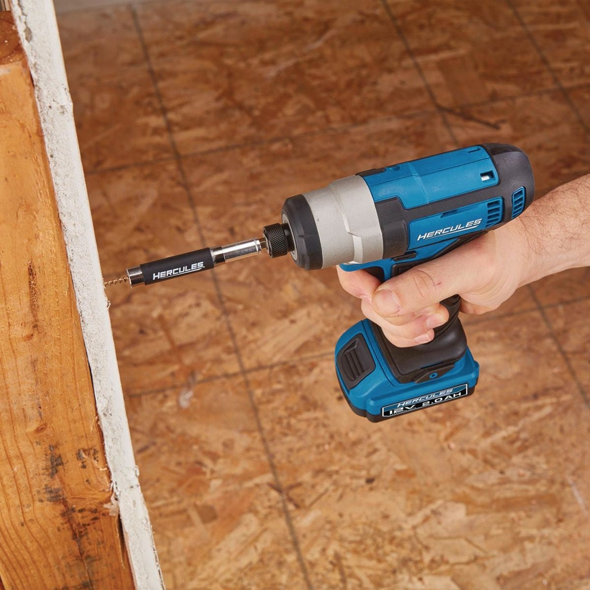 La visseuse à chocs hexagonale compacte sans fil 12v HERCULES® de 1/4 po produit une puissance de 1000 po. lb. de couple et 3030 IPM pour gérer une large gamme d'applications de fixation, y compris les travaux sur les terrasses, les clôtures ou les cloisons sèches. Une lumière LED intégrée avec délai après le relâchement de la gâchette vous donne une vue claire dans les espaces sombres. Combiné avec le système de batterie HERCULES® Lithium-Ion pour une charge rapide et des durées de fonctionnement plus longues, cet outil offre des performances légendaires. Achetez en toute confiance avec un essai sans risque inclus sans poser de questions, avec une couverture supplémentaire jusqu'à 2 ans.